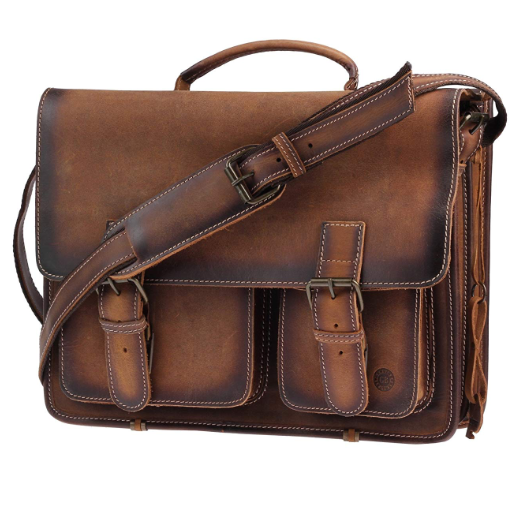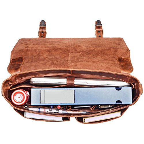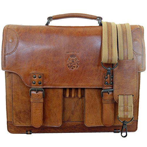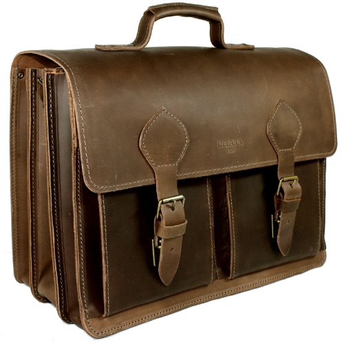 A vintage look is guaranteed for this adult leather satchel with a ... This brown leather briefcase can hold an A4 pocket and a small computer.